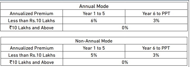 (Applicable for policies with Annualised Premium less than ₹ 10 Lakhs)