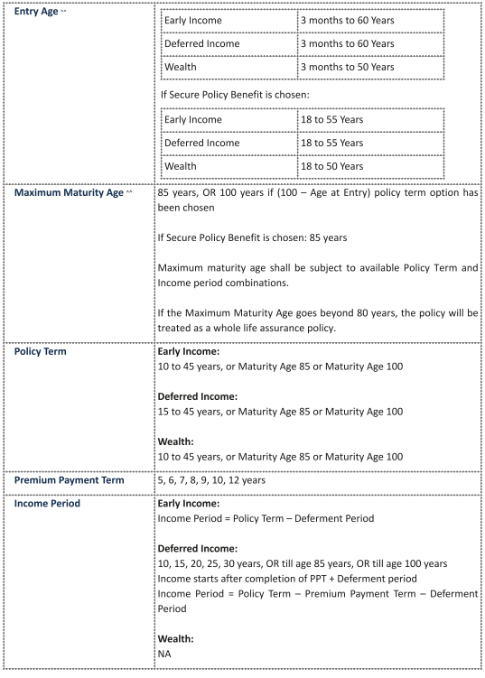 - The Secure Policy Benefit (SPB) protects your long-term financial goals by continuing income and maturity benefits in the event of the Life Assured’s unfortunate demise during the policy term.