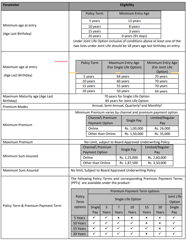 - Premiums can be paid in Monthly, Quarterly, Semi-Annual, or Annual modes, as per your convenience.