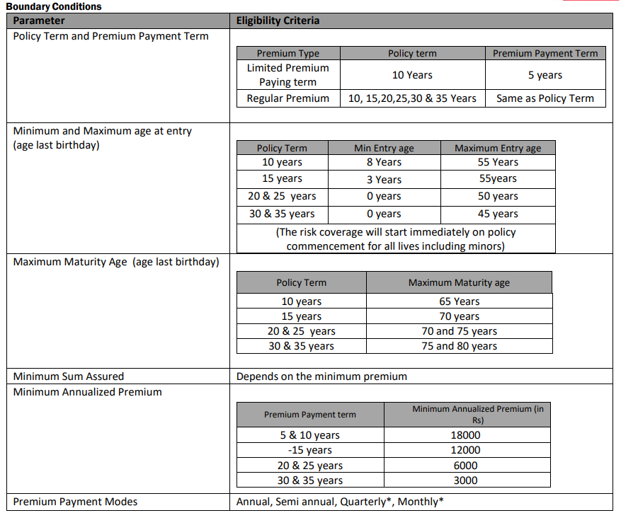 - Death benefit is the higher of the Sum Assured on Maturity or 11 times the base annualised premium.