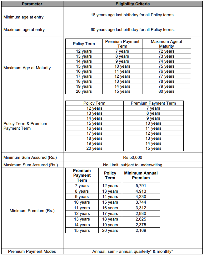 - The plan provides flexibility through multiple premium-paying and policy term options.