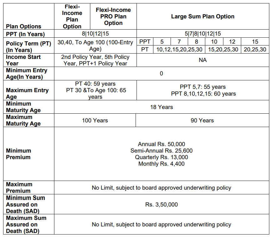 - Choose from three benefit options—Flexi-Income Plan, Flexi-Income PRO Plan, and Large Sum Plan—based on your needs.