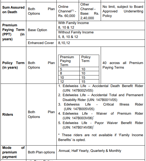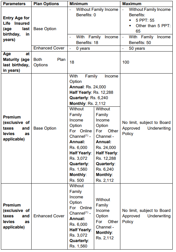 - By paying an additional premium, you can ensure your family’s goals are safeguarded even in your absence or on diagnosis of a covered critical illness through Family Income Benefits.