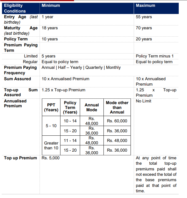 - Flexible Premium Paying Term enables you to increase or decrease the premium payment duration as per your financial situation.