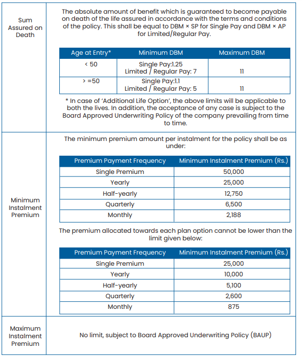 Some variants offer a Joint Life Policy Continuity Benefit, covering the spouse along with the main life assured.