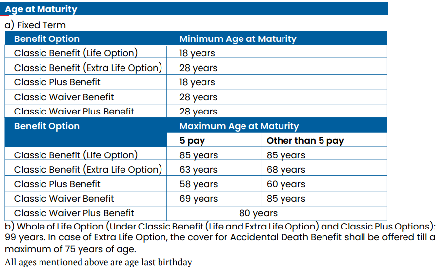 | Classic Benefit (Life Option) | Higher of Sum Assured OR Fund Value |