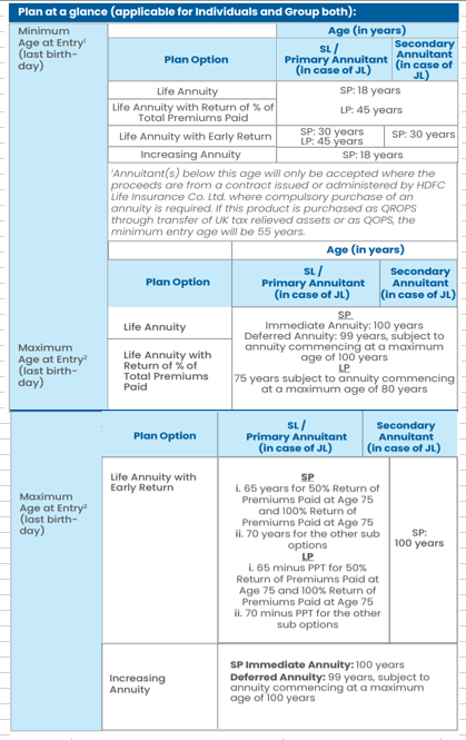 The HDFC Life Smart Pension Plus eligibility depends on factors such as minimum entry age, maximum maturity age, premium payment option chosen, and the type of annuity selected.