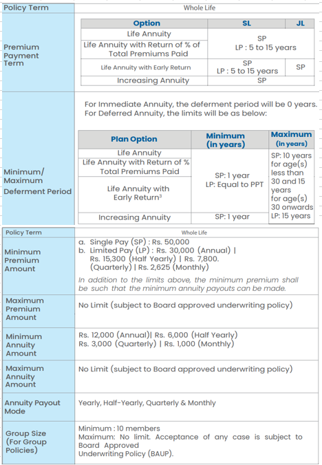 - Annuity option once chosen at inception can’t be changed during the policy term.