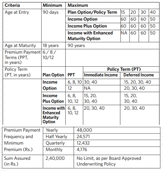 It offers a shorter pay commitment of 6, 8, 10 or 12 years and provides level income for 15 or 20 or 30 or 40 years along with a Life Cover to ensure your loved ones stay protected.