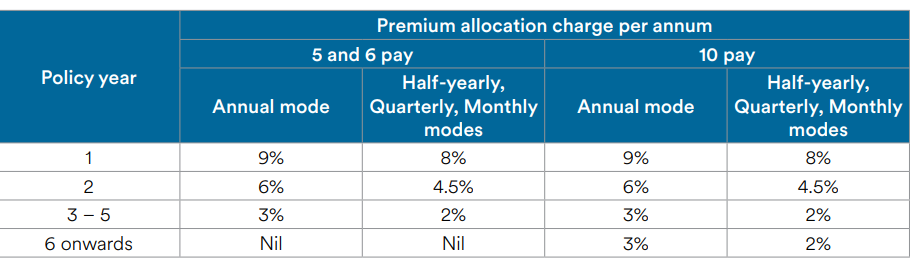 These are expressed as a percentage of the premium, and it is deducted from the premium amount at the time of premium payment; and balance units are allocated in the chosen funds thereafter.