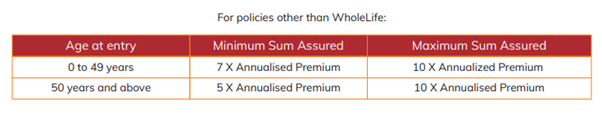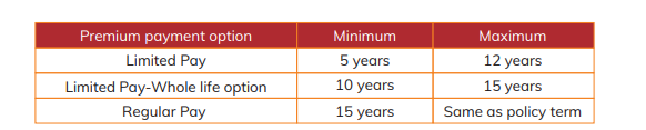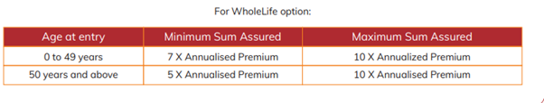 Minimum Premium Amount: Rs. 30,000 p.a. & For Whole-life option – ₹ 60,000