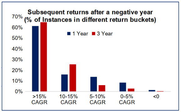 In fact, data shows that after every negative year, NIFTY 50, Mid Cap 150 and Small Cap 250 indices have historically delivered exceptional returns: